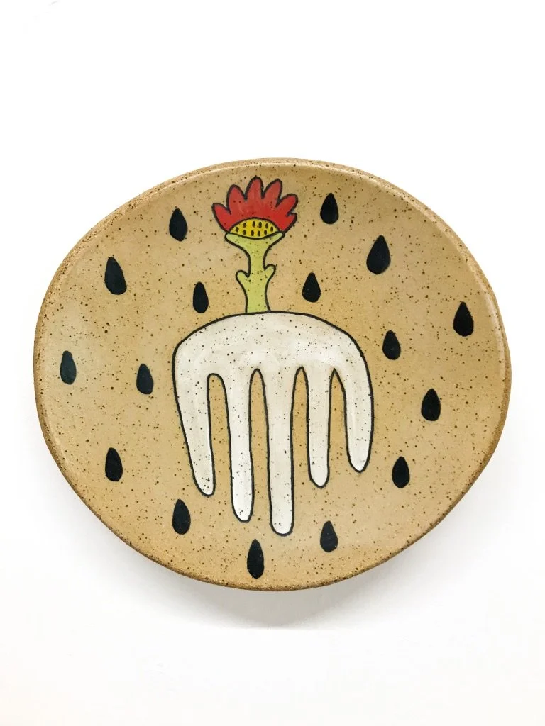 While leaving evidence of the hand, I use surface design to tell tales through imagery, patterns and bold, slightly wavered lines. Heavily influenced by folk and outsider art, I explore the poetics of the mundane. The small joys of everyday blended with bright colors and imagery of animals and people bring my work to life. Many of the narratives going through my mind while working come from things I habitually look at and the emotions they elicit. I carry a wide range of imagery in my pocket at all times, whether it is plants and animals I am observing or more surreal emotional depth.